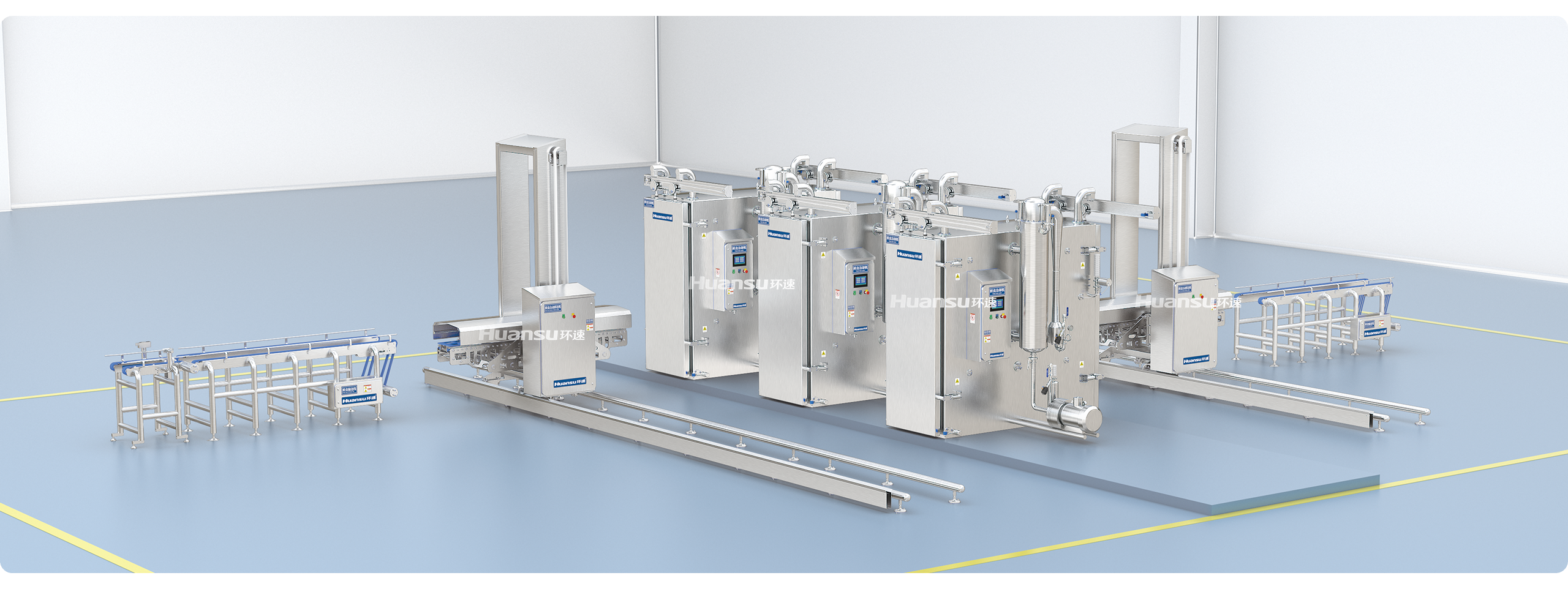 全功能周轉(zhuǎn)盤(pán)清洗機(jī),滅菌、去污、除水一條龍