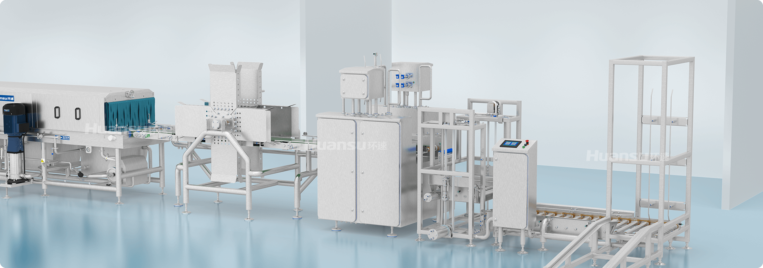 生產(chǎn)線實(shí)現(xiàn)全自動(dòng)化,容器的轉(zhuǎn)運(yùn)、拆垛、清洗、堆垛等工序均由程序控制,可全天候不間斷生產(chǎn)。PLC搭配觸控屏,實(shí)時(shí)監(jiān)控生產(chǎn)線的運(yùn)行;人性化交互界面,保障生產(chǎn)線的易用性;系統(tǒng)可記憶歷史參數(shù),方便快捷調(diào)用。