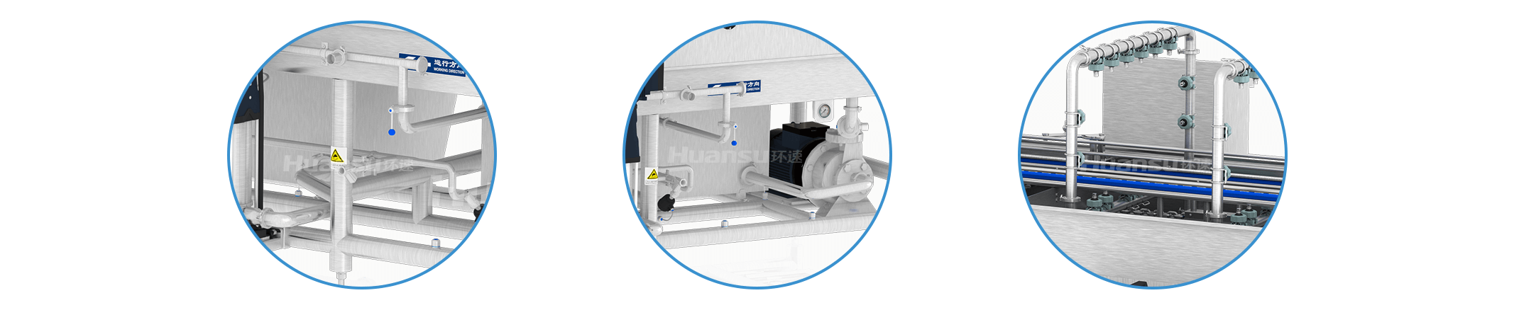 設(shè)備整機(jī)防水防潮,可直接進(jìn)行人工擦拭清洗、化學(xué)清洗,省時(shí)省力;采用無(wú)縫焊接、圓管底架、管內(nèi)走線(xiàn)等設(shè)計(jì),設(shè)備外表面光滑易清洗,污漬不易殘留。隧道側(cè)擋板、管路、噴頭等部件采用易拆設(shè)計(jì),確保清洗無(wú)障礙;隧道進(jìn)出口設(shè)有擋水簾,有效防止水花飛濺和蒸汽泄露,有利于保持車(chē)間衛(wèi)生。