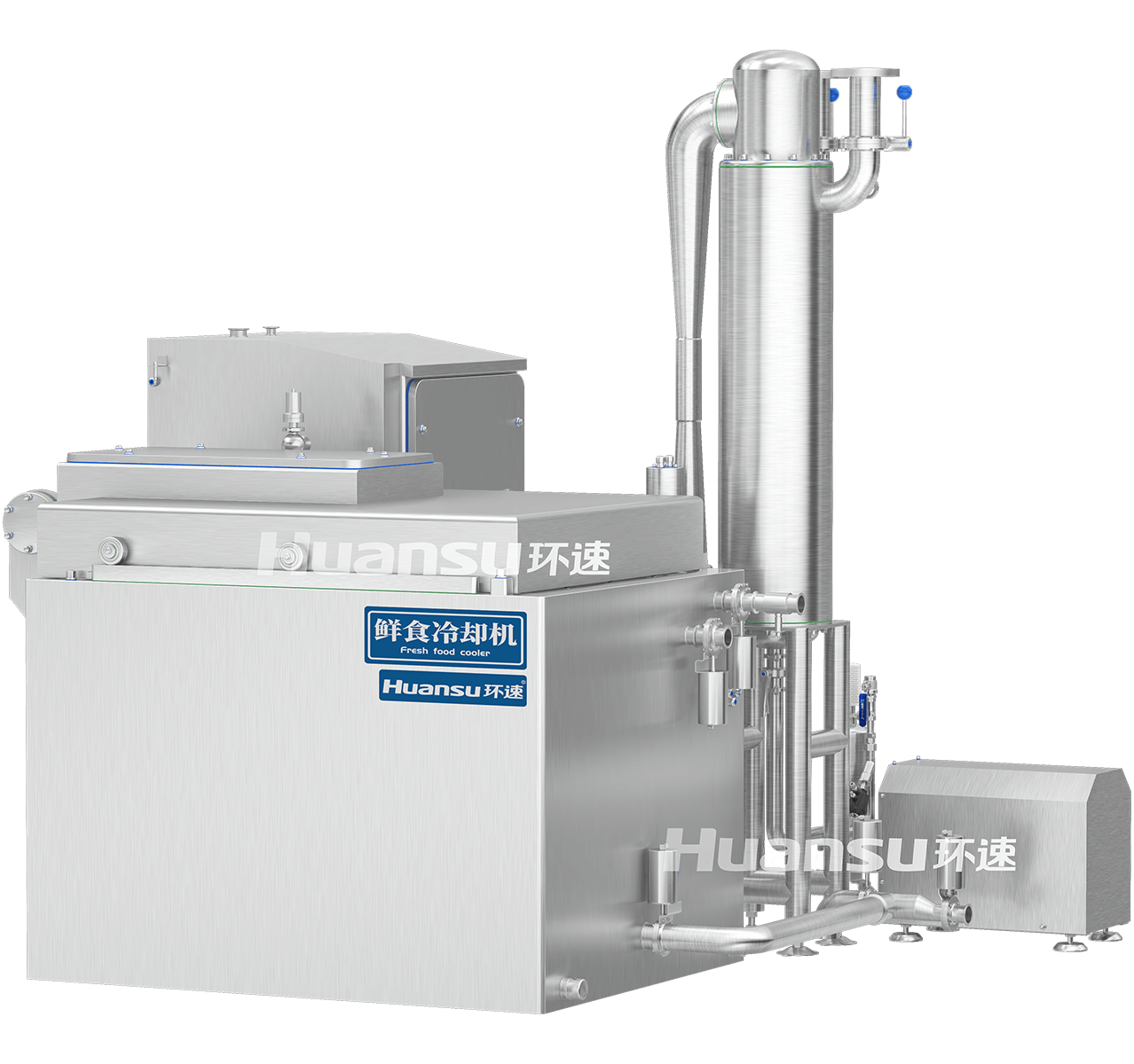 把高溫食品批量放入全封閉的真空艙中,在抽走空氣的過程中,食品中的水將會沸騰,持續(xù)吸收食品自身的熱量,從而在不依靠高能耗制冷系統(tǒng)、無外來污染風(fēng)險的前提下,實現(xiàn)食品的快速冷卻。