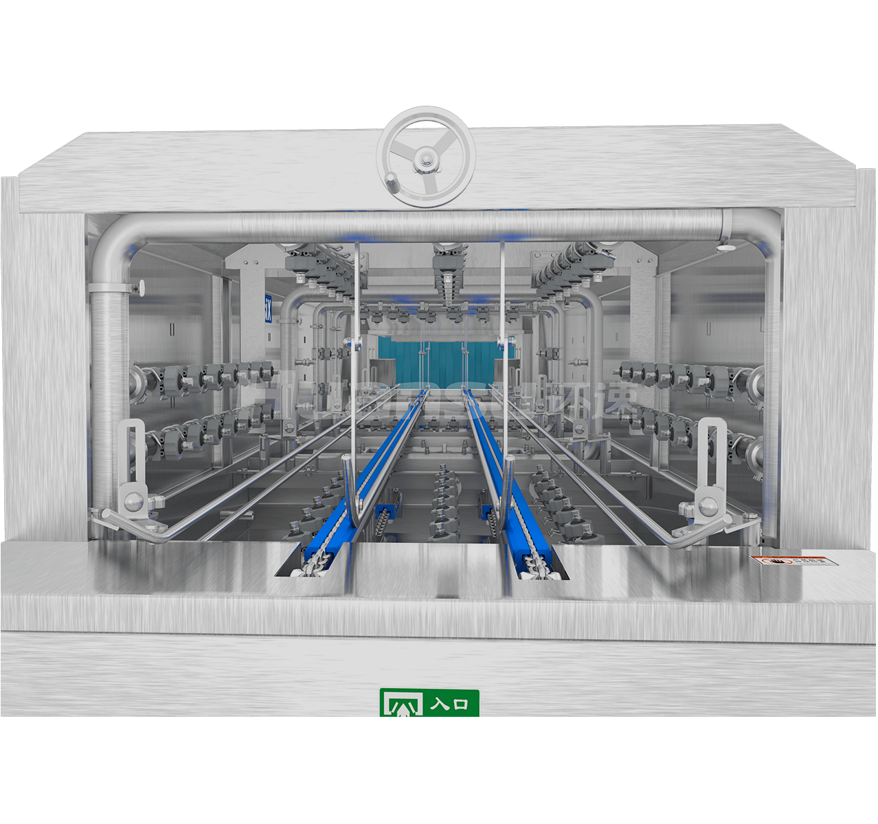 高溫高壓全覆蓋式噴淋,無需洗滌劑,去除頑固污漬,滅菌不留死角;三級(jí)水箱系統(tǒng)合理配置水資源,循環(huán)用水節(jié)能減排;清洗段后端可選配風(fēng)干機(jī)、烘干機(jī),快速去除容器表面殘留的水分。