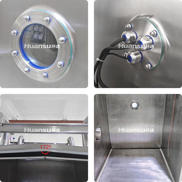 雙坡頂設(shè)計+240目拉絲拋光+172°衛(wèi)生傾角,防止凝水滴落影響品相。