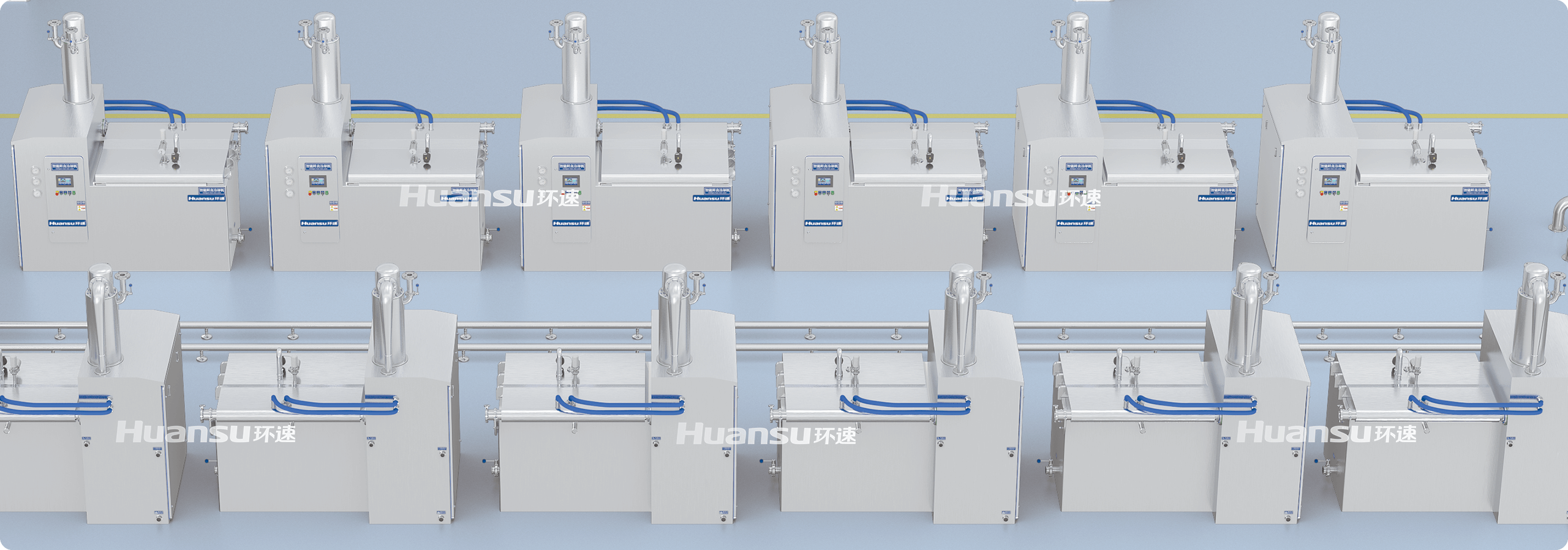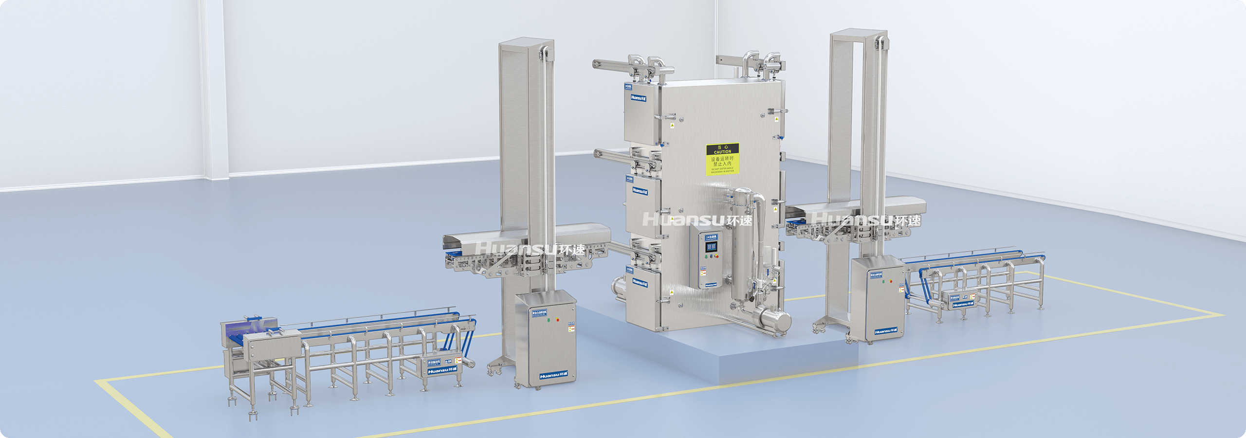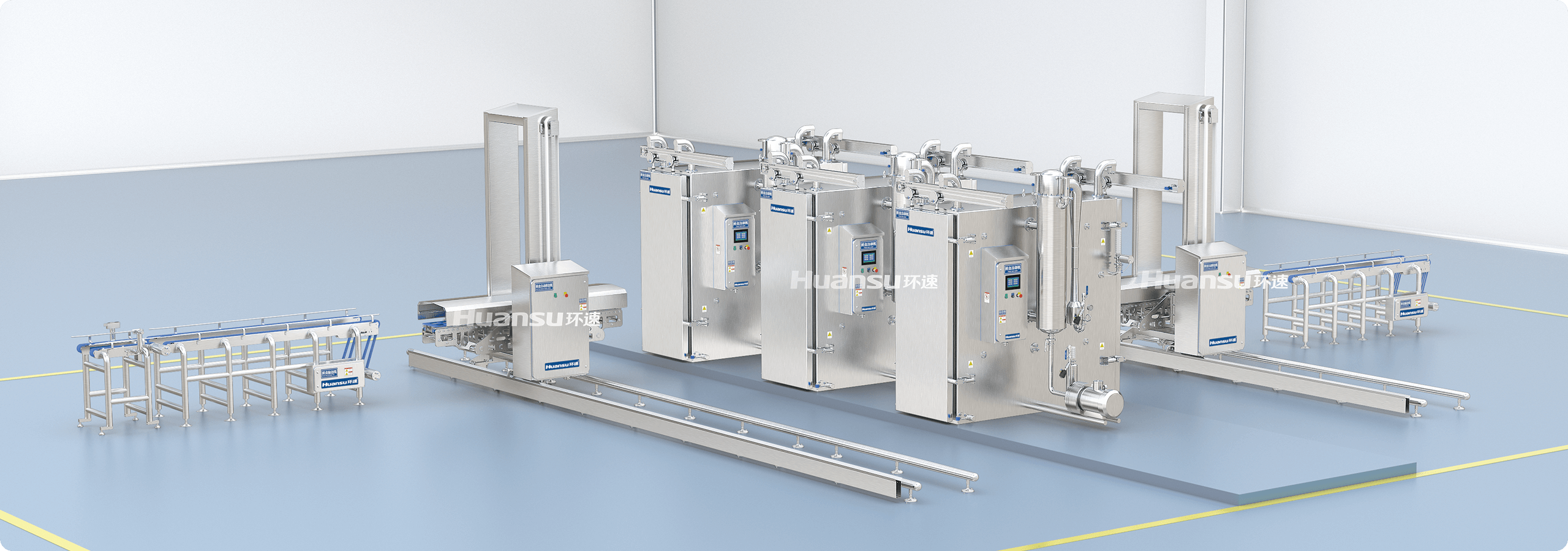 生產(chǎn)流程全自動化,節(jié)約人工成本;設(shè)備造型簡約、布局緊湊,節(jié)省車間場地;冷卻艙均采用夾層保溫設(shè)計,有效節(jié)約能源。生產(chǎn)線可采用冷熱分區(qū)的車間布局,實施衛(wèi)生分級控制,降低車間改造與日常清洗成本。