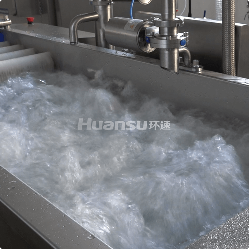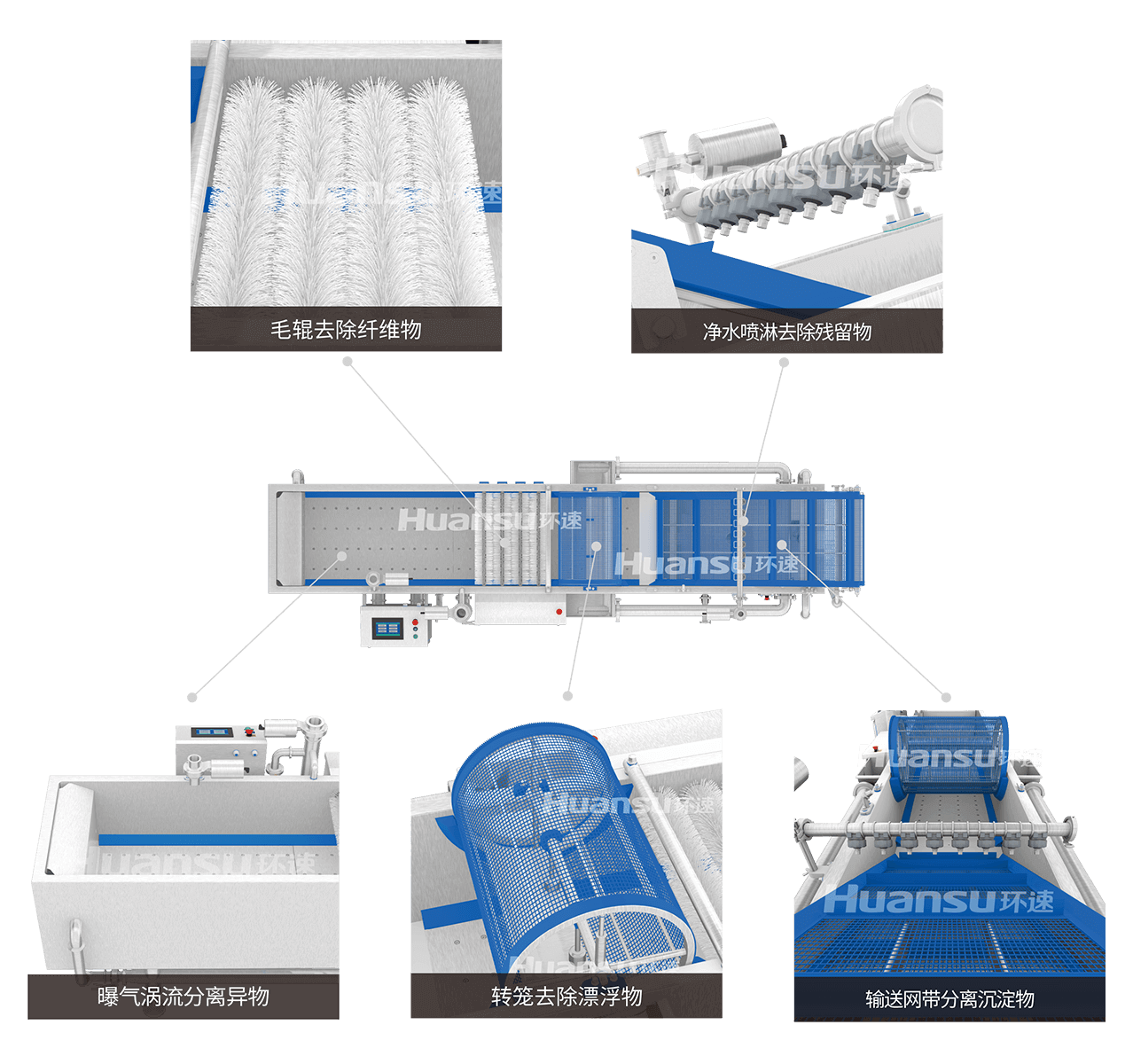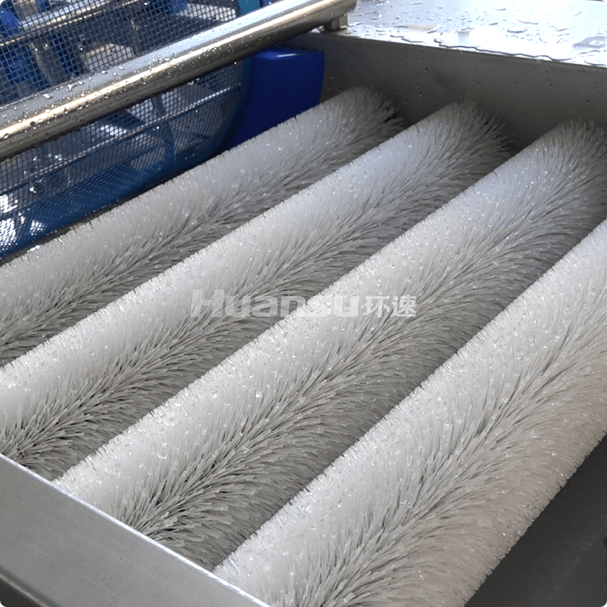 根據(jù)食材中常見雜質(zhì)的特性,針對性設(shè)計清洗流程:先通過曝氣、渦流分離雜質(zhì),再分別用毛輥去除毛發(fā)等纖維物、轉(zhuǎn)籠去除飛蟲等漂浮物、輸送網(wǎng)帶過濾泥沙等沉淀物,最后通過凈水噴淋去除食材上的殘留物與清洗液。