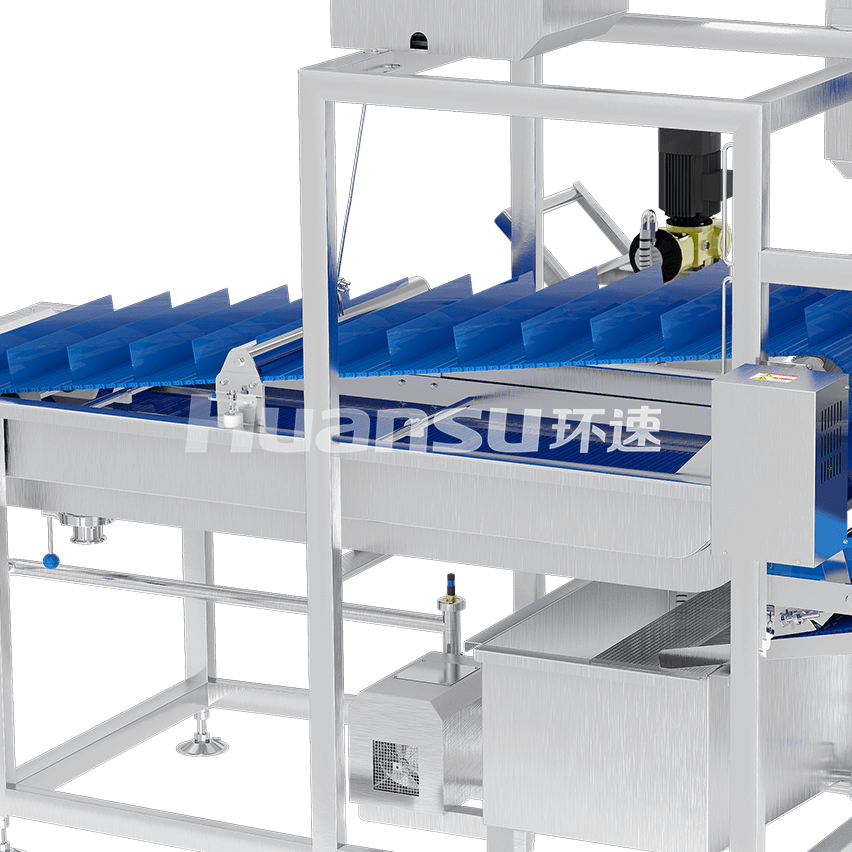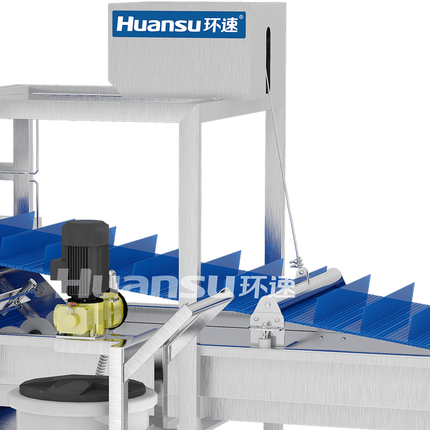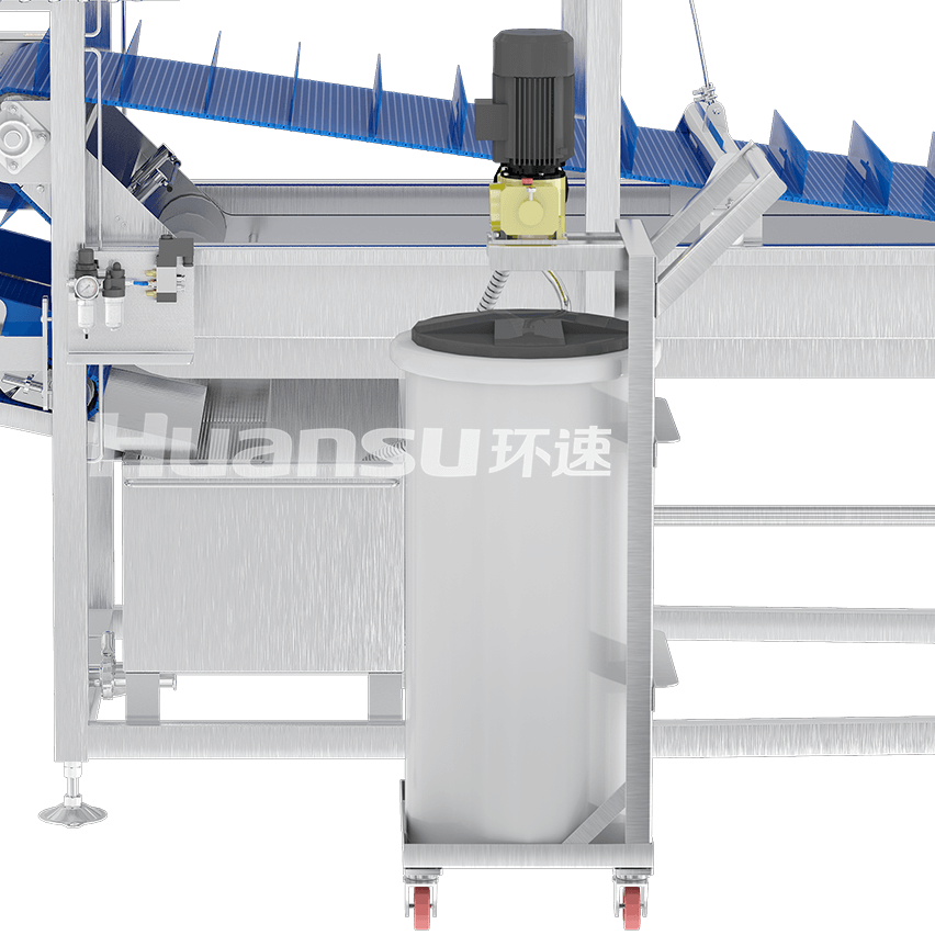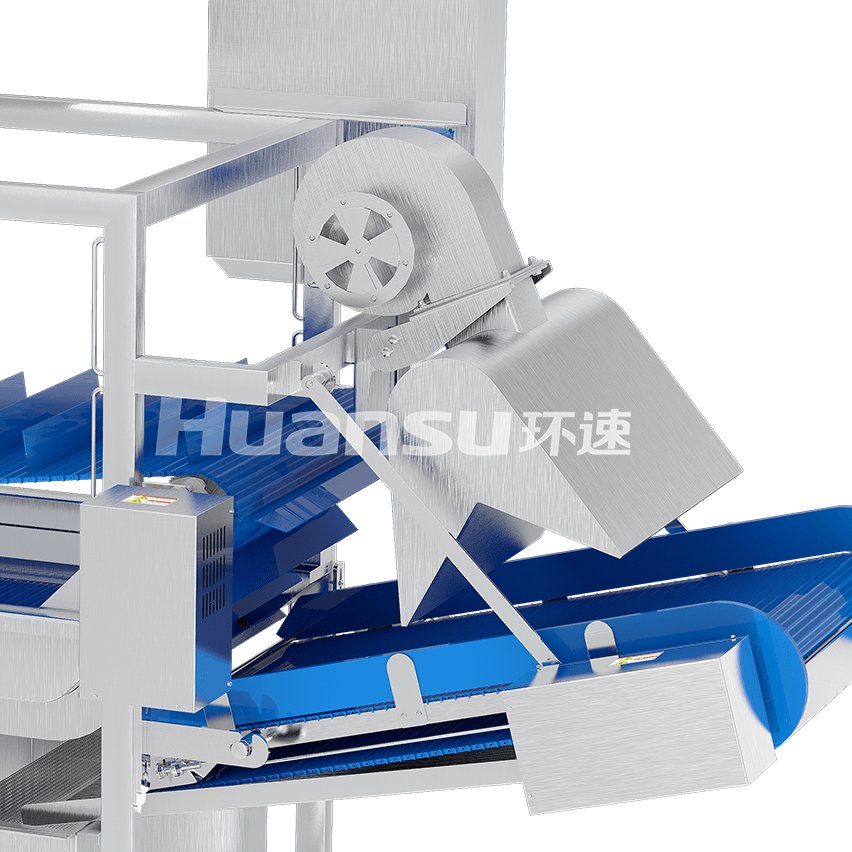 由輸送帶和風(fēng)刀裝置組成。輸送帶負(fù)責(zé)分離食材與保鮮液,并把食材送往出料口。風(fēng)刀裝置產(chǎn)生高速氣流,用于去除食材表面殘留的溶液,達(dá)到出料標(biāo)準(zhǔn)。