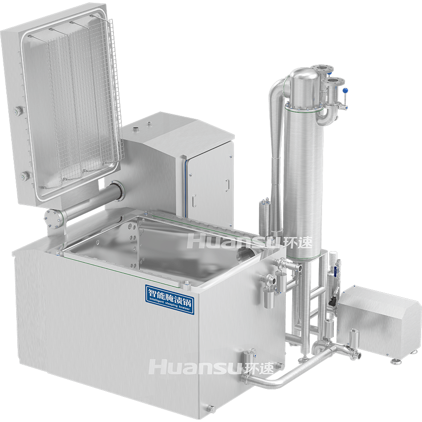 設備注重衛(wèi)生防護,集成多項控菌手段,嚴格保障食品安全。設備采用的是無縫焊接內(nèi)膽,內(nèi)壁為鏡面拋光,光滑無瑕疵,細菌無處滋生。投料所用的吊架與料筐可直接在鍋體中進行蒸汽殺菌,避免交叉污染。鍋體采用耐高溫硅膠條進行密封,有效防止污染物入侵;真空系統(tǒng)配備高精度空氣過濾器,確保復壓時吸入的空氣潔凈無污染。